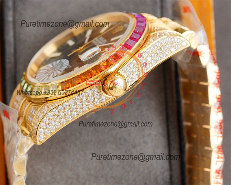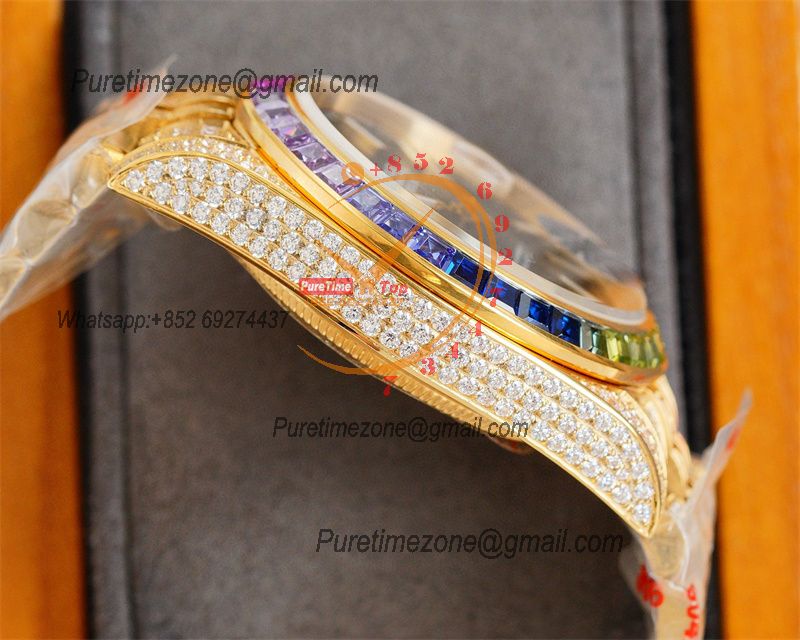 Datejust Miyota Automatic Ladies Watch 36 Best Edition RRF Yellow Arabic Paved Diamond Iced Out 904L Steel Bracelet