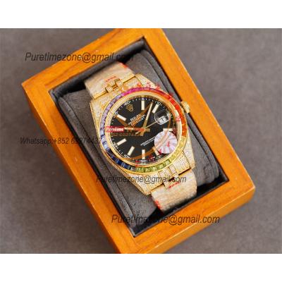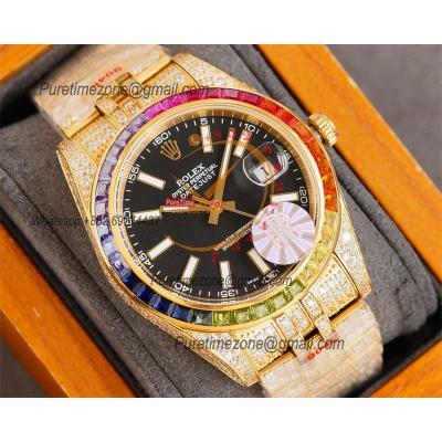 Datejust A2836 Automatic Mens Watch 41 Best Edition RRF Black Arabic Paved Diamond Fully Iced Out 904L Steel Bracelet