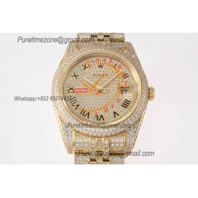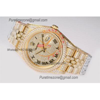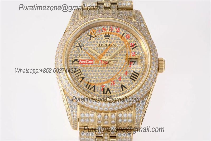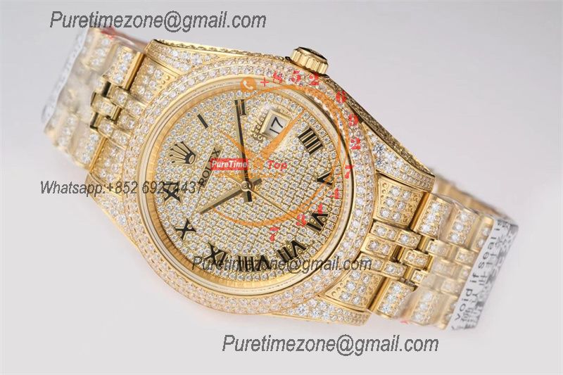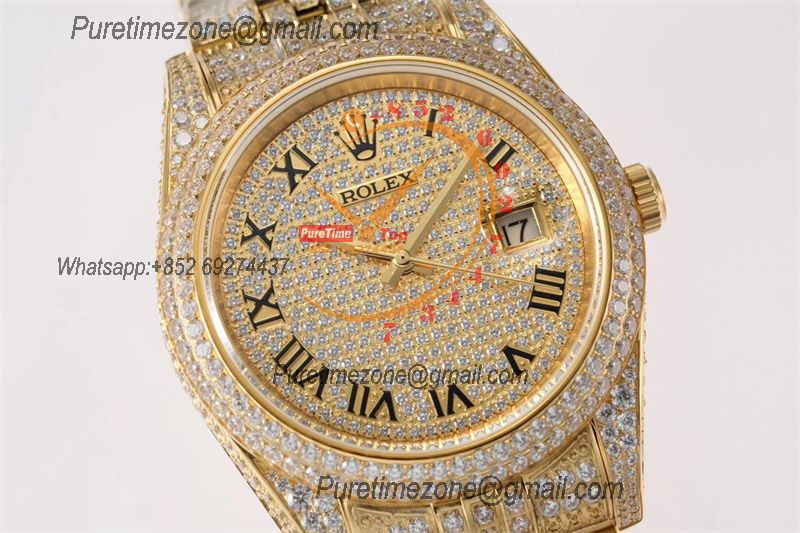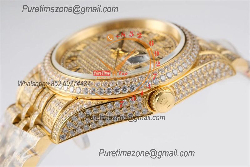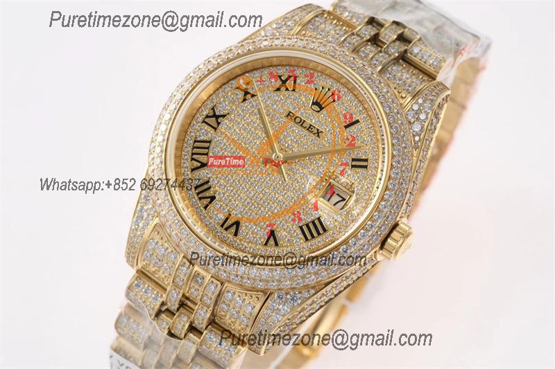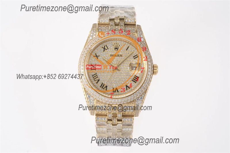 Home Rolex Iced Out Datejust A3235 Automatic Mens Watch Best Edition TWF 41 YG Paved Diaomond Black Roman Dial Ice Out 904L Steel Bracelet