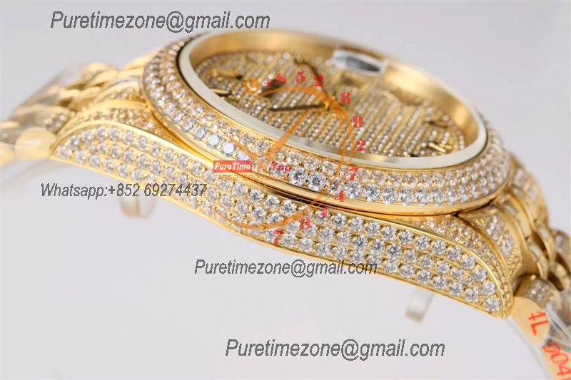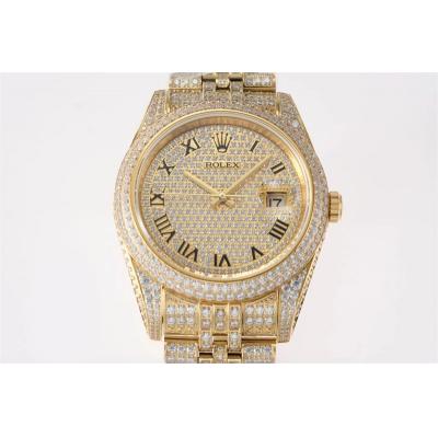 Datejust A2824 Automatic Mens Watch 41 Best Edition RRF Yellow Arabic Paved Diamonds Fully Iced Out 904L Steel Bracelet