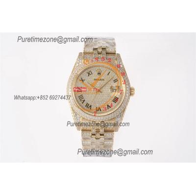 Datejust Miyota Automatic Ladies Watch 36 Best Edition RRF Color Arabic Paved Diamond Fully Iced Out 904L Steel Bracelet