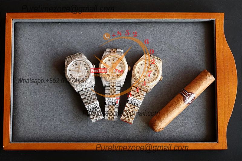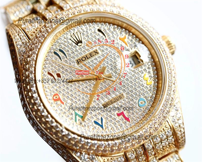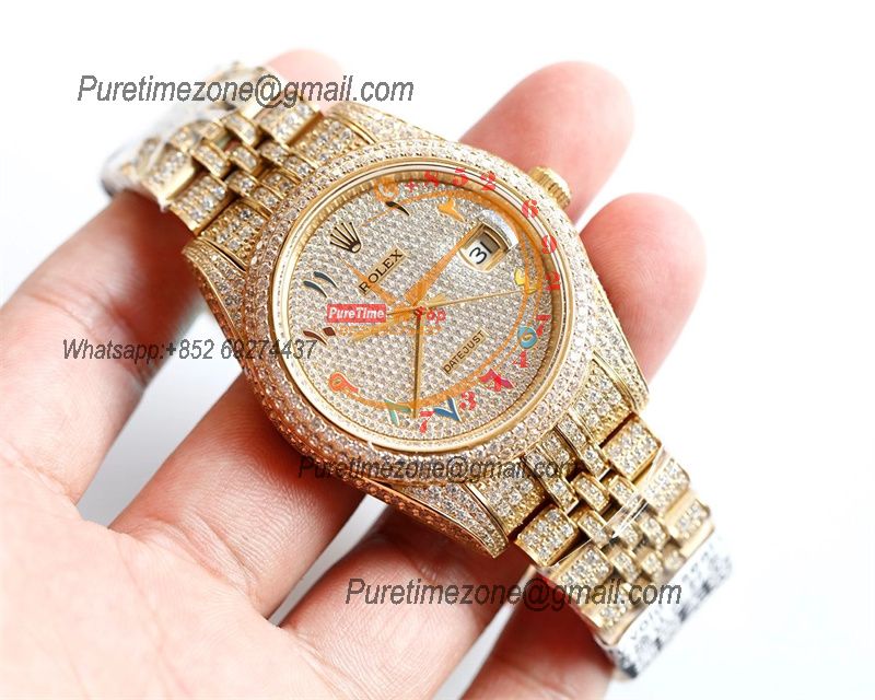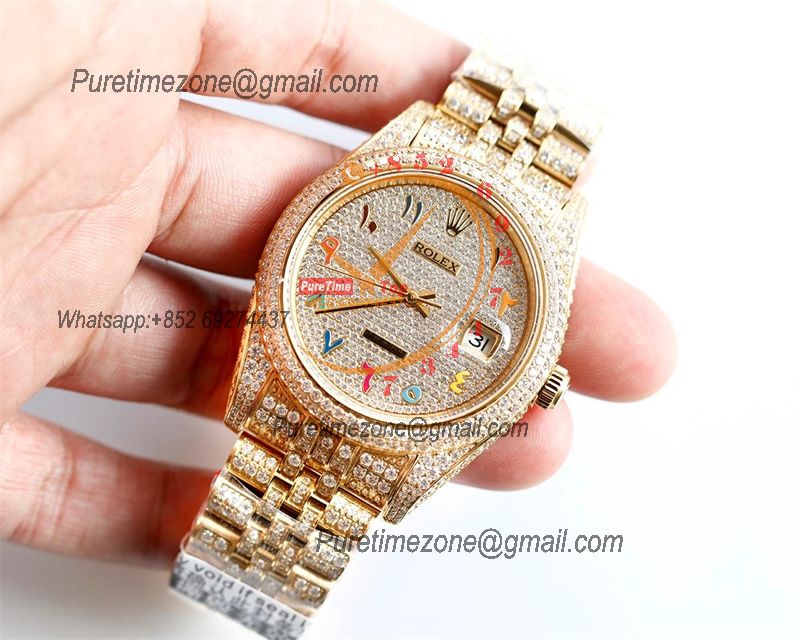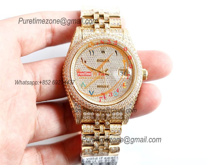 Home Rolex Iced Out Datejust A3235 Automatic Mens Watch Best Edition TWF 41 YG Paved Diaomonds Color Arabic Dial Ice Out 904L Steel Bracele