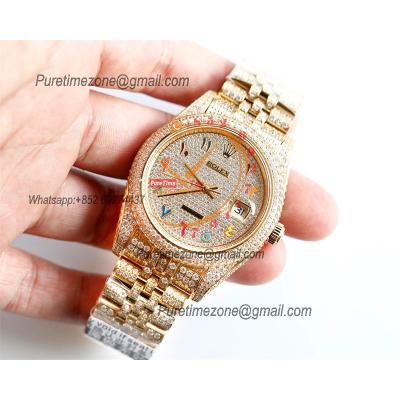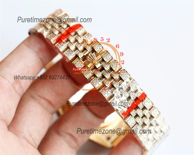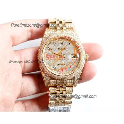 Home Rolex Iced Out Datejust A3235 Automatic Mens Watch Best Edition TWF 41 YG Paved Diaomonds Color Arabic Dial Ice Out 904L Steel Bracele