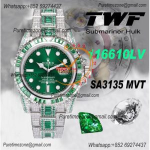 Submariner SA3135 Automatic Mens Watch Best Edition TWF Square Green Gemstone Bezel Ice Out 904L Steel Bracelet $1,140.00 $950.00