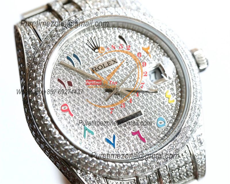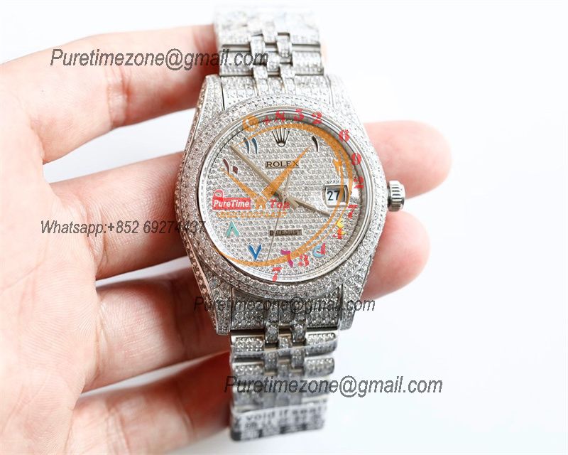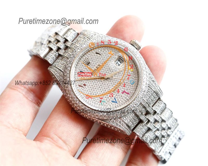 Datejust A3235 Automatic Mens Watch Best Edition TWF Paved Diaomond Color Arabic Dial Ice Out 904L Steel Bracelet