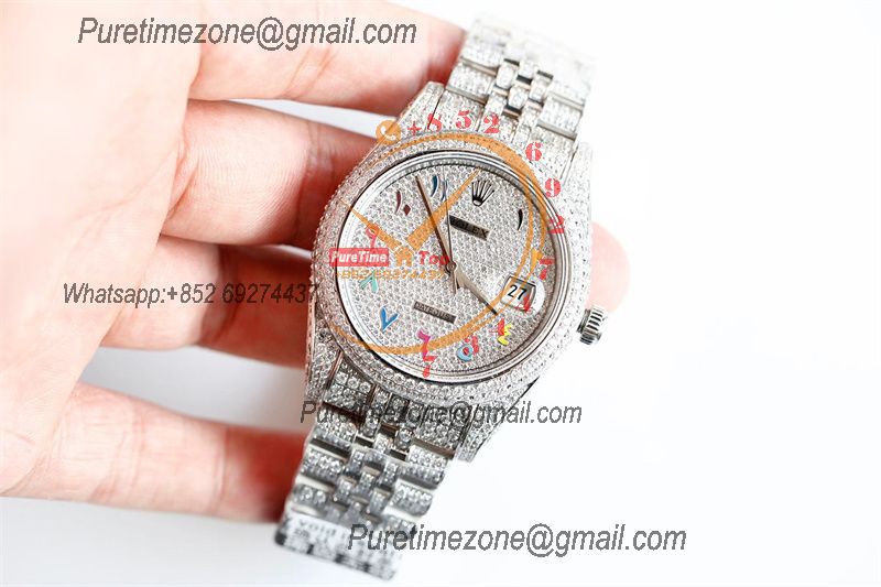 Datejust A2836 Automatic Mens Watch 41 Best Edition RRF Colors Arabic Paved Diamond Fully Iced Out 904L Steel Bracelet