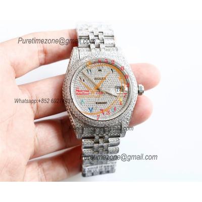 Datejust A3235 Automatic Mens Watch Best Edition TWF Paved Diaomond Color Arabic Dial Ice Out 904L Steel Bracelet