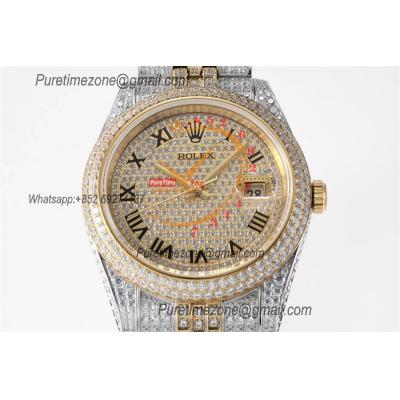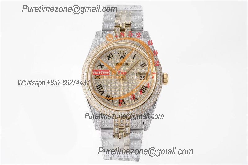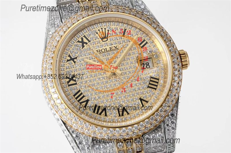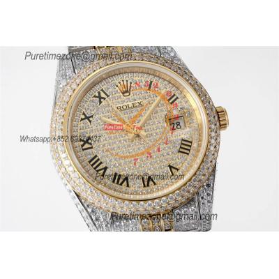 Datejust A2824 Automatic Mens Watch 41 Best Edition RRF Yellow Arabic Paved Diamonds Fully Iced Out 904L Steel Bracelet