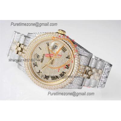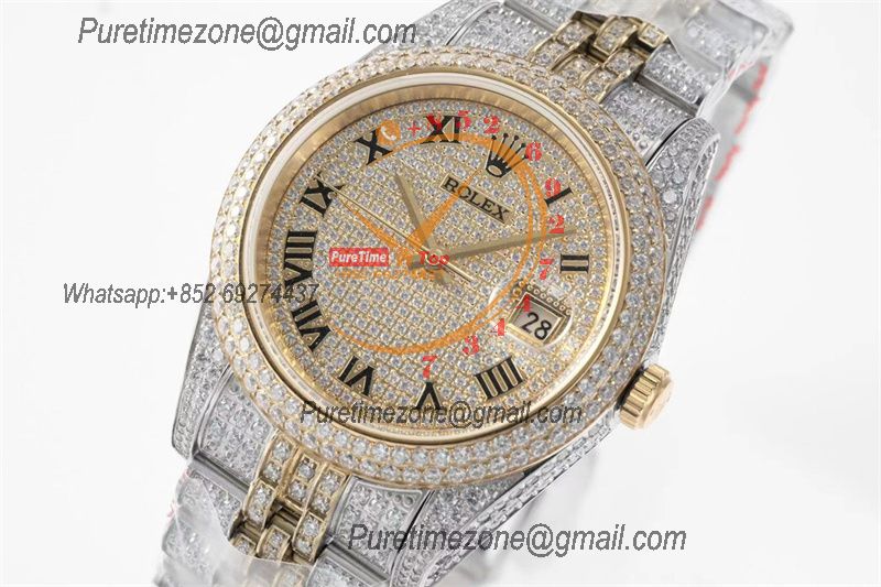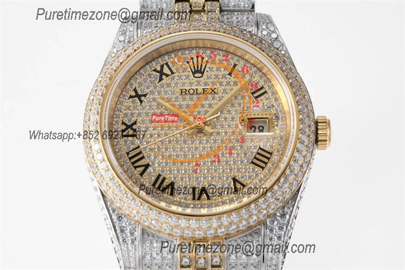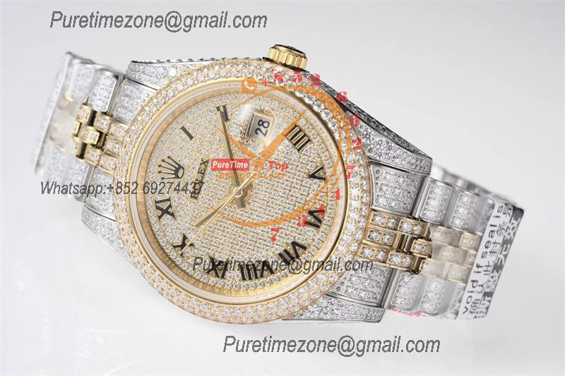 Home Rolex Iced Out Datejust A3235 Automatic Mens Watch Best Edition TWF TTYG Paved Diaomond Black Roman Dial Ice Out 904L Steel Bracelet