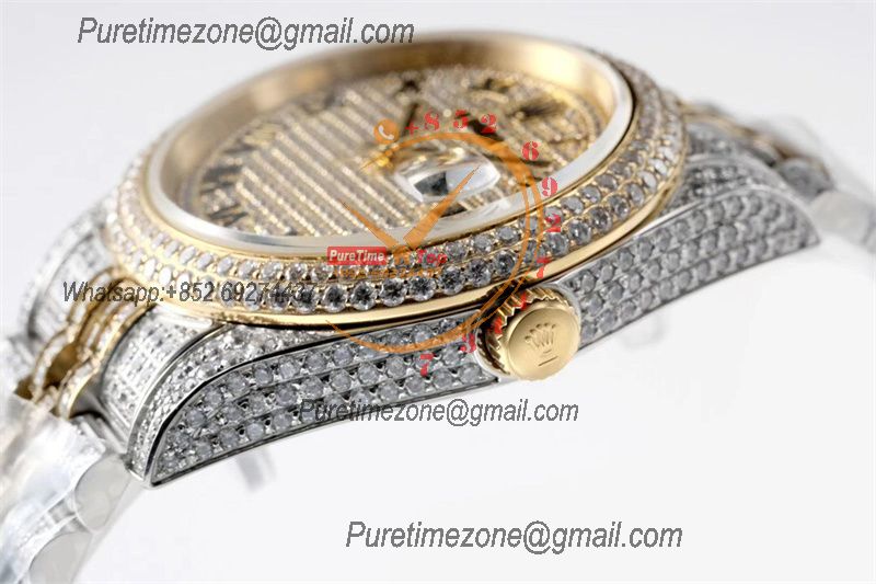 Datejust A2824 Automatic Mens Watch 41 Best Edition RRF Yellow Stick Diamonds Fully Iced Out 904L Steel Bracelet