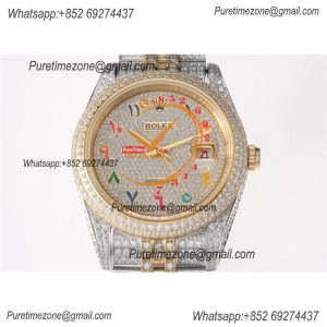 Datejust Miyota Automatic Ladies Watch 36 Best Edition RRF Color Arabic Paved Diamond Fully Iced Out 904L Steel Bracelet