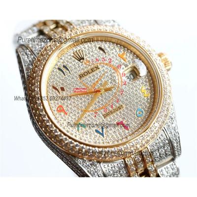 Home Rolex Iced Out Datejust A3235 Automatic Mens Watch Best Edition TWF TTYG Paved Diaomond Color Arabic Dial Ice Out 904L Steel Bracelet