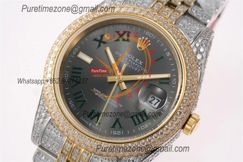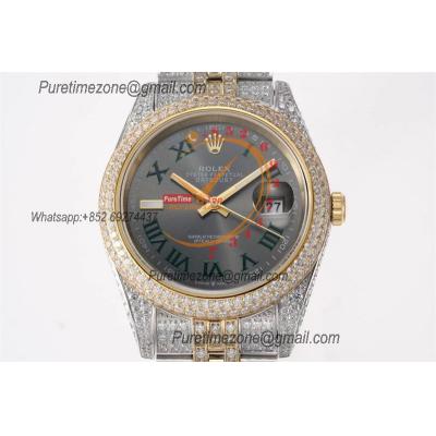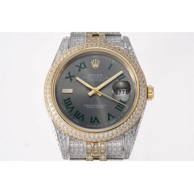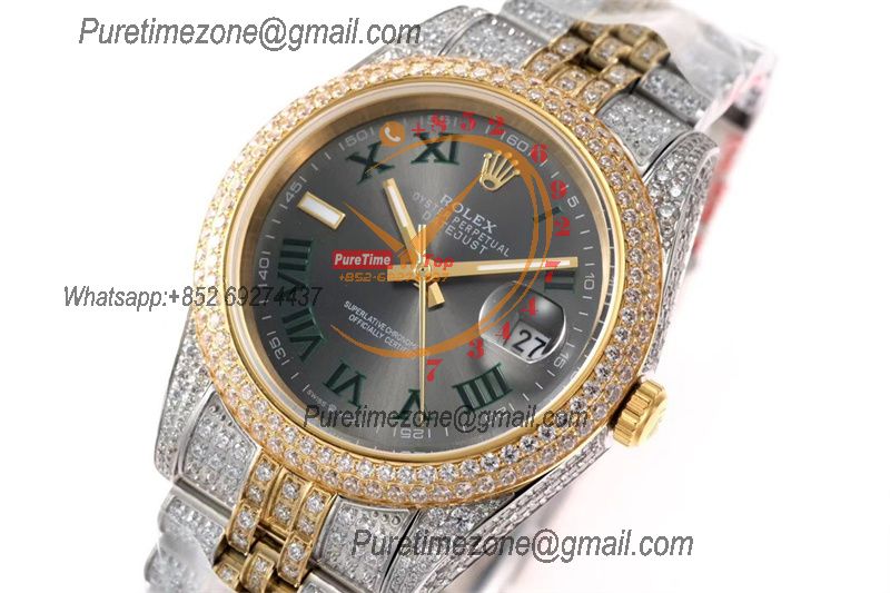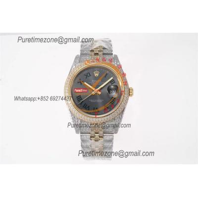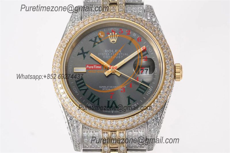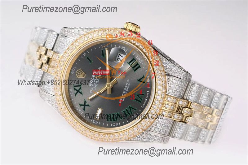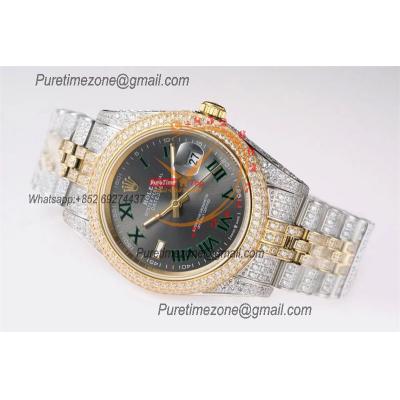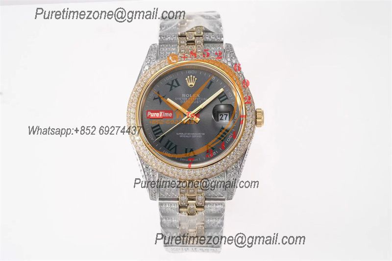 Home Rolex Iced Out Datejust A3235 Automatic Mens Watch Best Edition TWF Wimbledon TTYG Paved Diaomond Gray Roman Dial 904L Steel Bracelet
