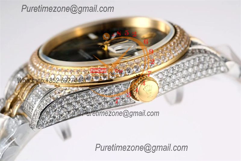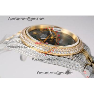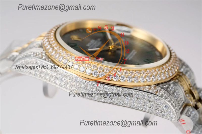 Datejust A3235 Automatic Mens Watch Best Edition TWF 41 YG Paved Diaomond Black Roman Dial Ice Out 904L Steel Bracelet $960.00 $800.00