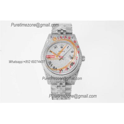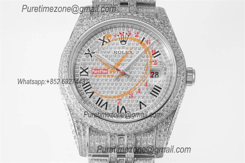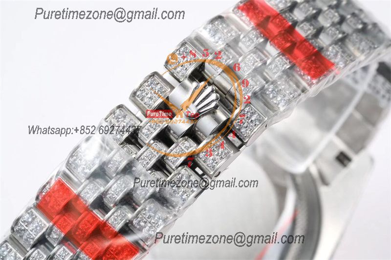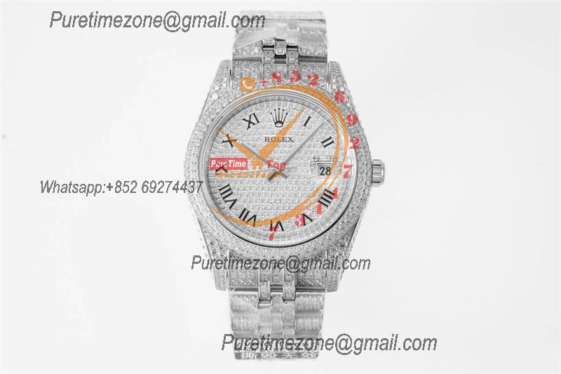 Datejust Miyota Automatic Ladies Watch 36 Best Edition RRF Red Arabic Paved Diamond Fully Iced Out 904L Steel Bracelet