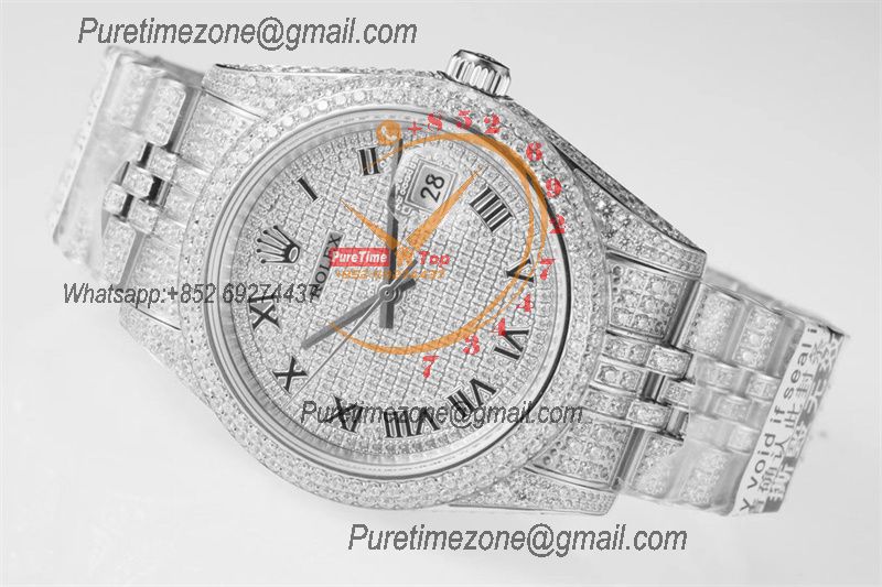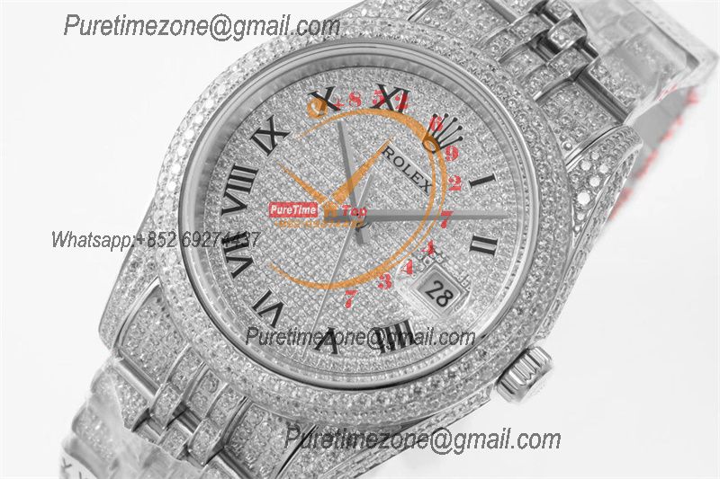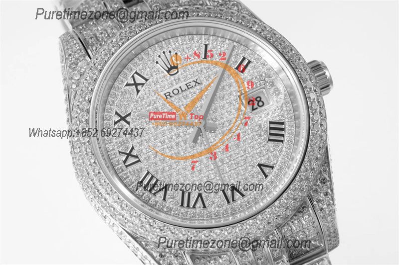 Datejust A2836 Automatic Mens Watch 41 Best Edition RRF Red Arabic Paved Diamond Fully Iced Out 904L Steel Bracelet