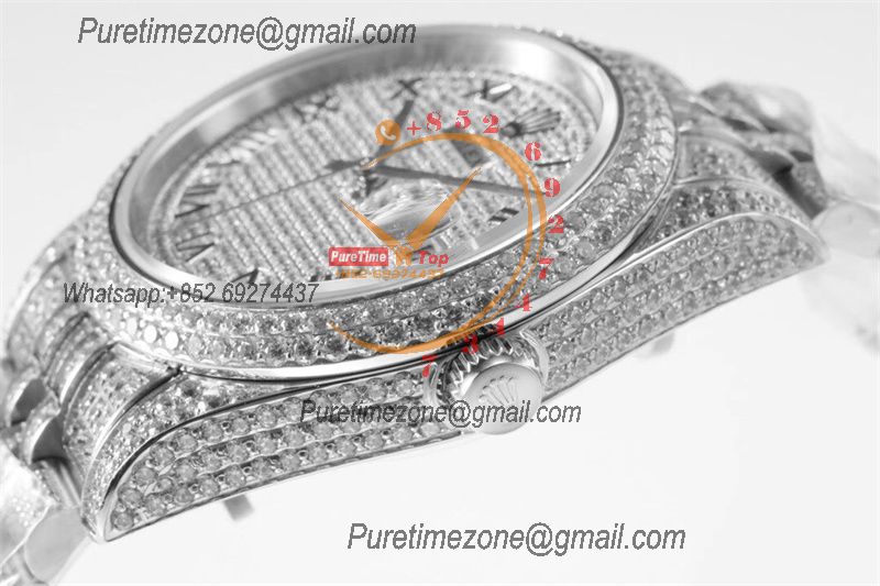 Datejust A2824 Automatic Mens Watch 41 Best Edition RRF Silver Diamond Paved Diamonds Fully Iced Out 904L Steel Bracelet
