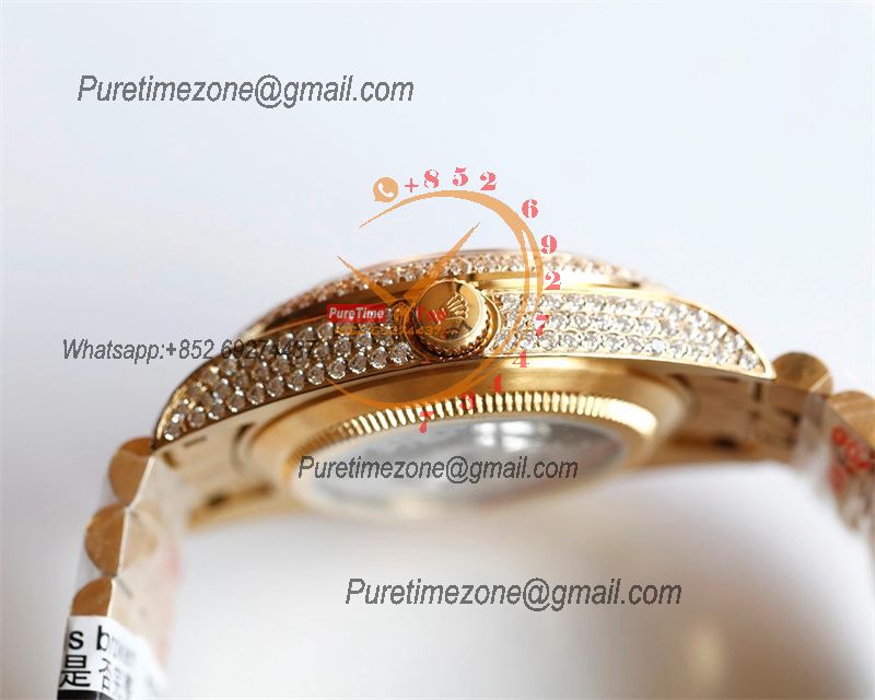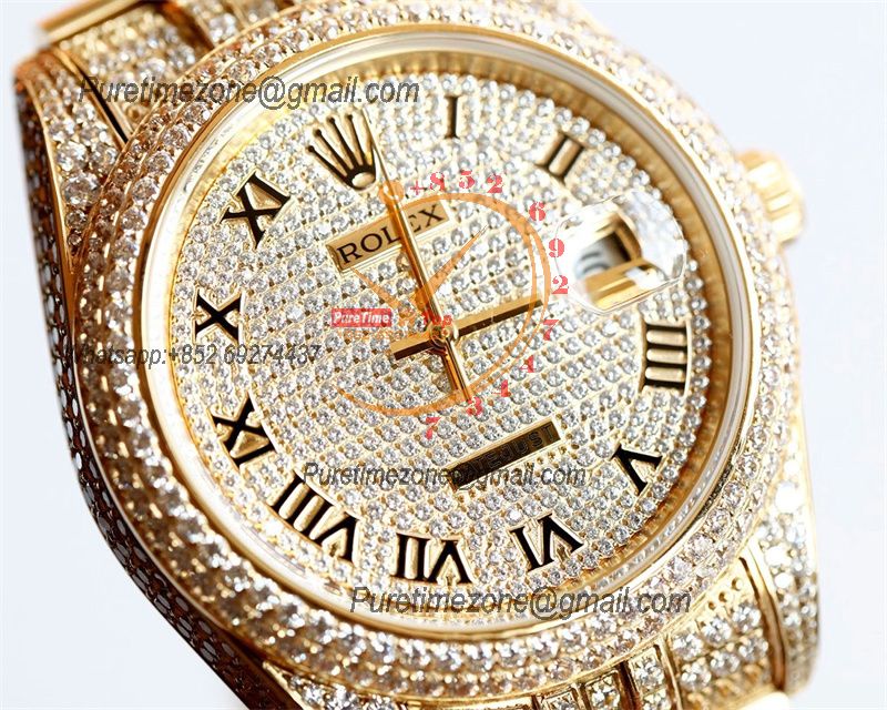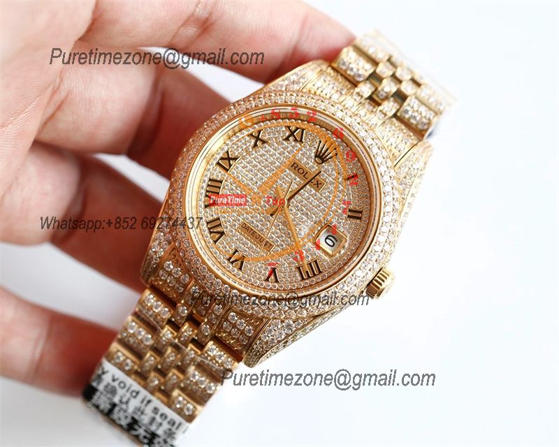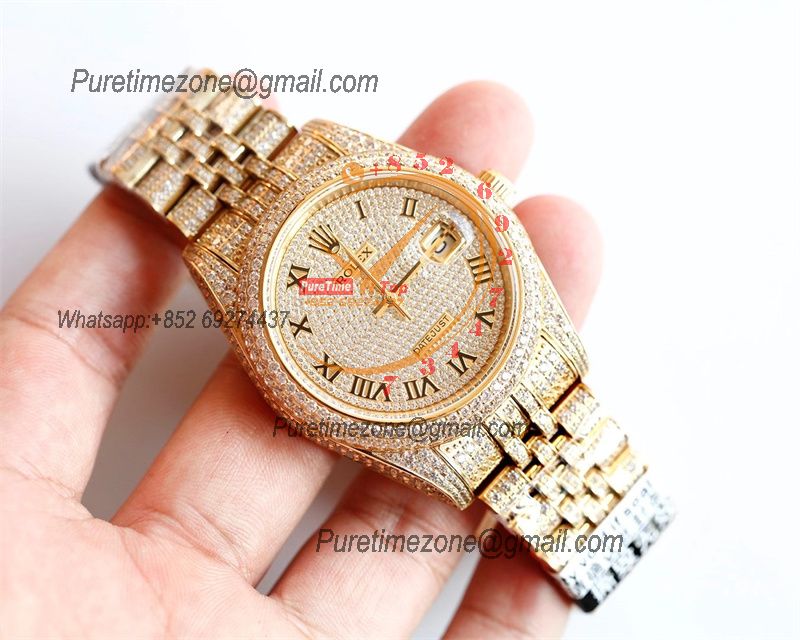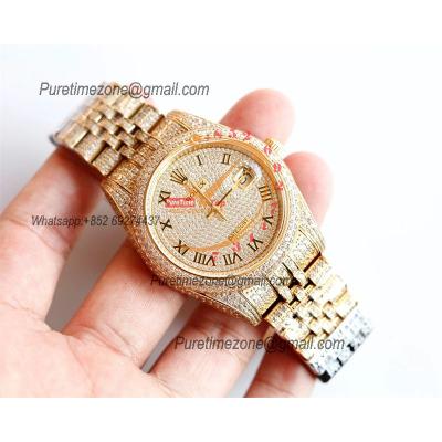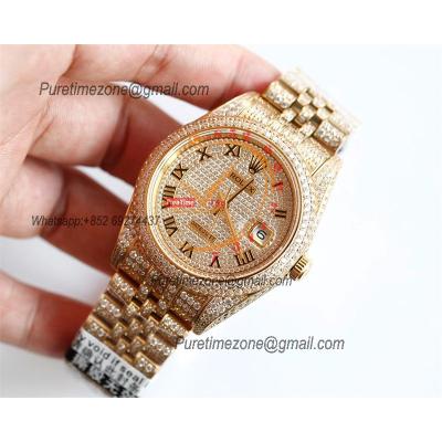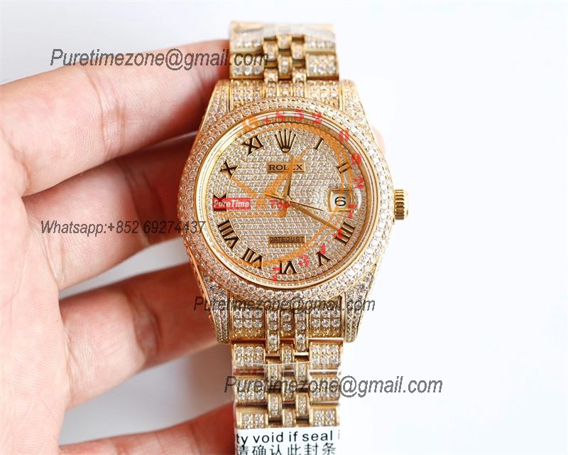 Datejust A3235 Automatic Mens Watch Best Edition TWF YG Paved Diaomond Gold Roman Dial Ice Out 904L Steel Bracelet