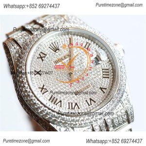 Datejust A2824 Automatic Mens Watch 41 Best Edition RRF Blue Roman Paved Diamonds Fully Iced Out 904L Steel Bracelet