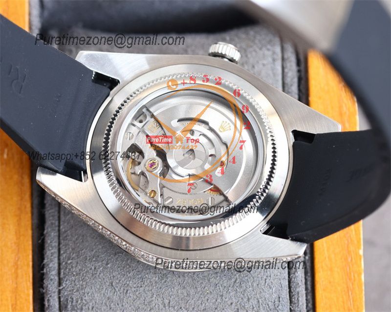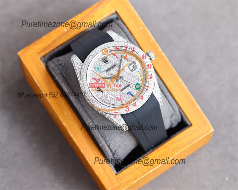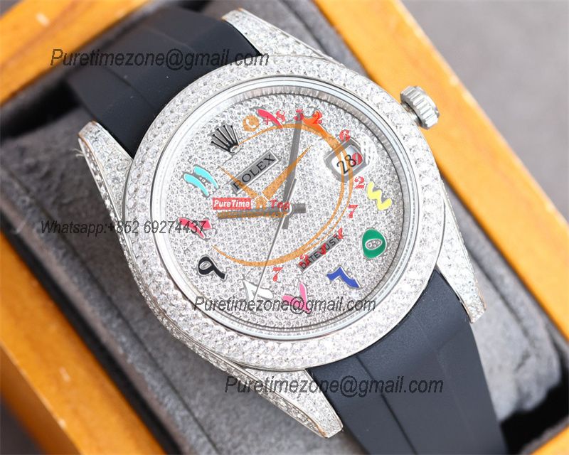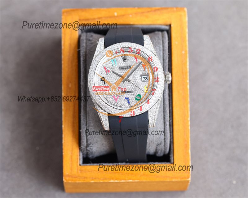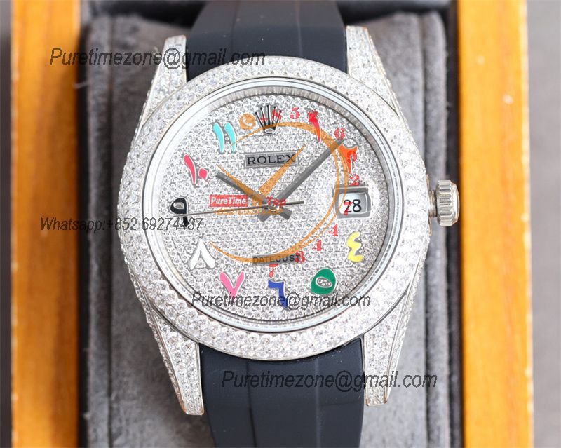 Home Rolex Iced Out Datejust A3255 Automatic Mens Watch 41 Best Edition RRF Color Arabic Paved Diamond Black Rubber Strap
