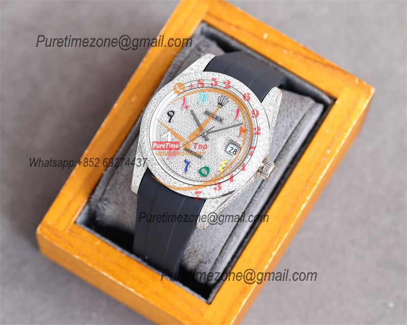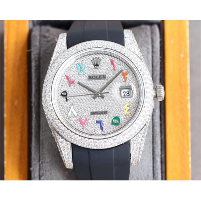 Datejust A3255 Automatic Mens Watch 41 Best Edition RRF Color Arabic Paved Diamond Black Rubber Strap