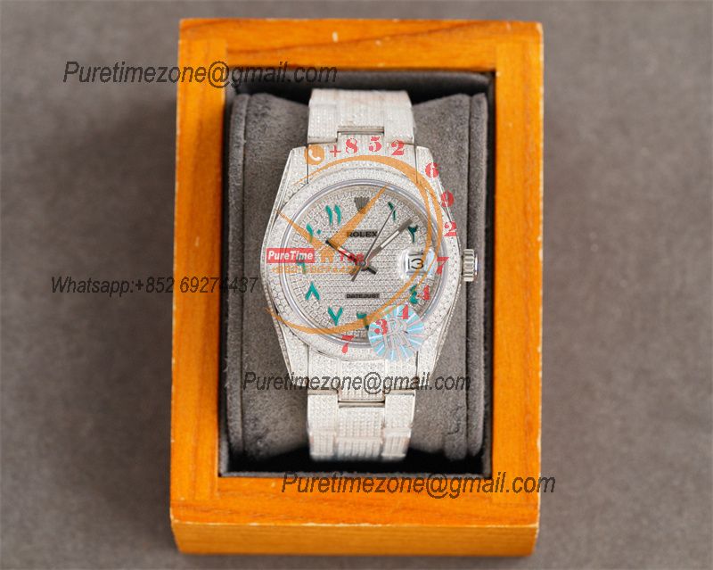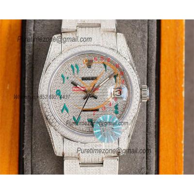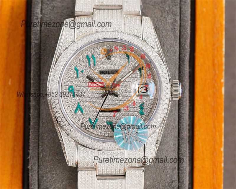 Datejust Miyota Automatic Ladies Watch 36 Best Edition RRF Green Arabic Paved Diamond Fully Iced Out 904L Steel Bracelet