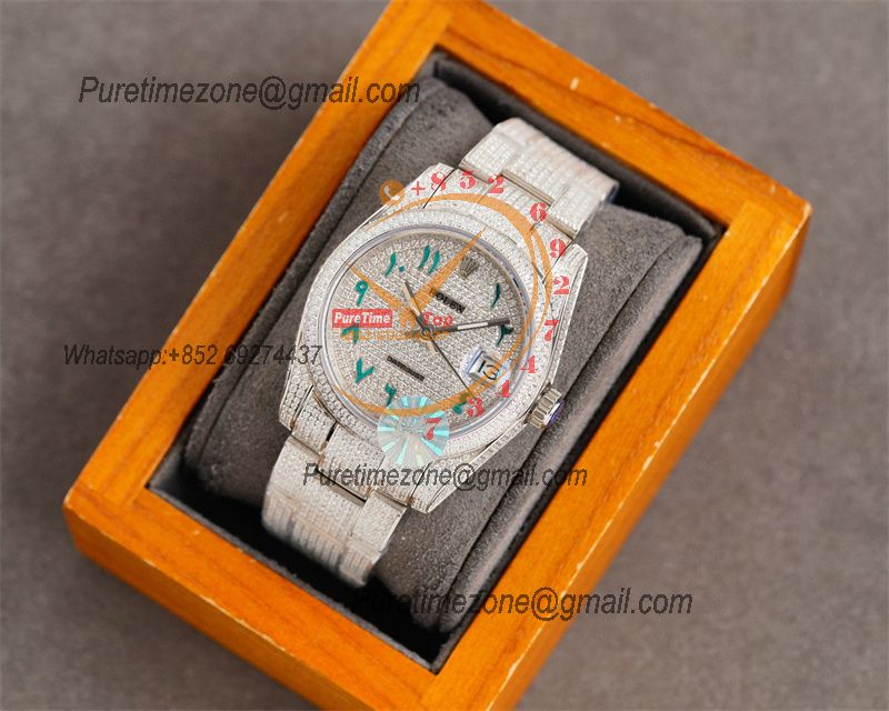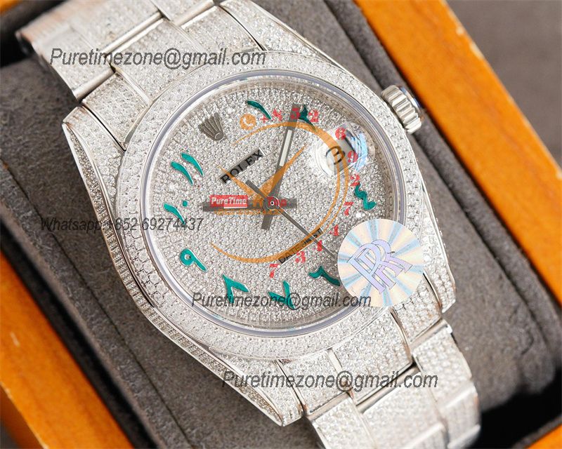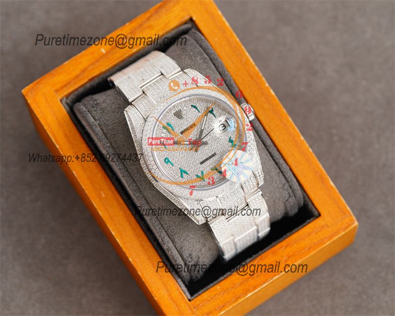 Datejust A2836 Automatic Mens Watch 41 Best Edition RRF Colors Arabic Paved Diamond Fully Iced Out 904L Steel Bracelet