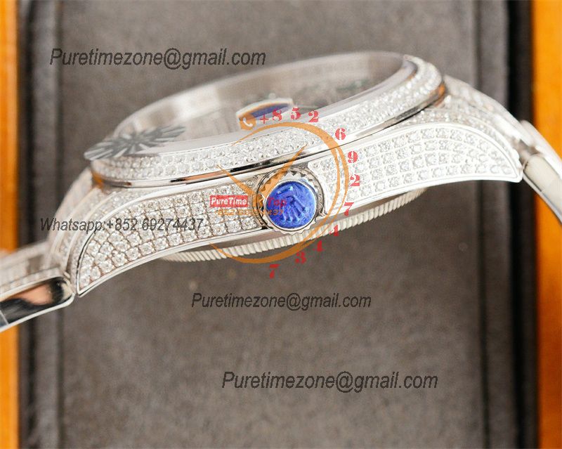 Datejust A2824 Automatic Mens Watch 41 Best Edition RRF Gray Diamond Paved Diamonds Fully Iced Out 904L Steel Bracelet