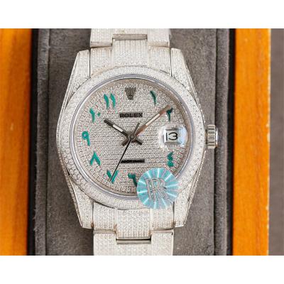 Home Rolex Iced Out Datejust Miyota Automatic Ladies Watch 36 Best Edition RRF Green Arabic Paved Diamond Fully Iced Out 904L Steel Bracelet