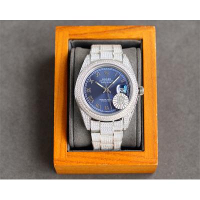 Home Rolex Iced Out Datejust Miyota Automatic Mens Watch 41 Best Edition RRF Blue Roman Paved Diamond Fully Iced Out 904L Steel Bracelet