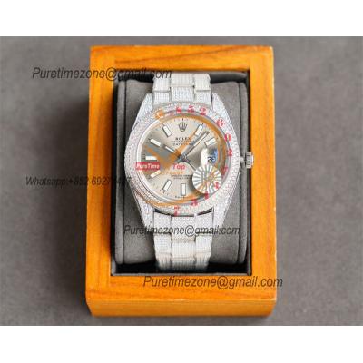 Home Rolex Iced Out Datejust Miyota Automatic Mens Watch 41 Best Edition RRF Gray Stick Paved Diamond Fully Iced Out 904L Steel Bracelet