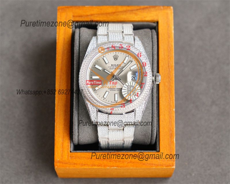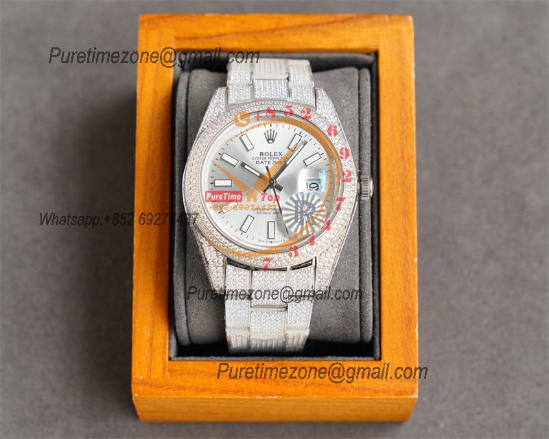 Datejust A2824 Automatic Mens Watch 41 Best Edition RRF Silver Diamond Paved Diamonds Fully Iced Out 904L Steel Bracelet