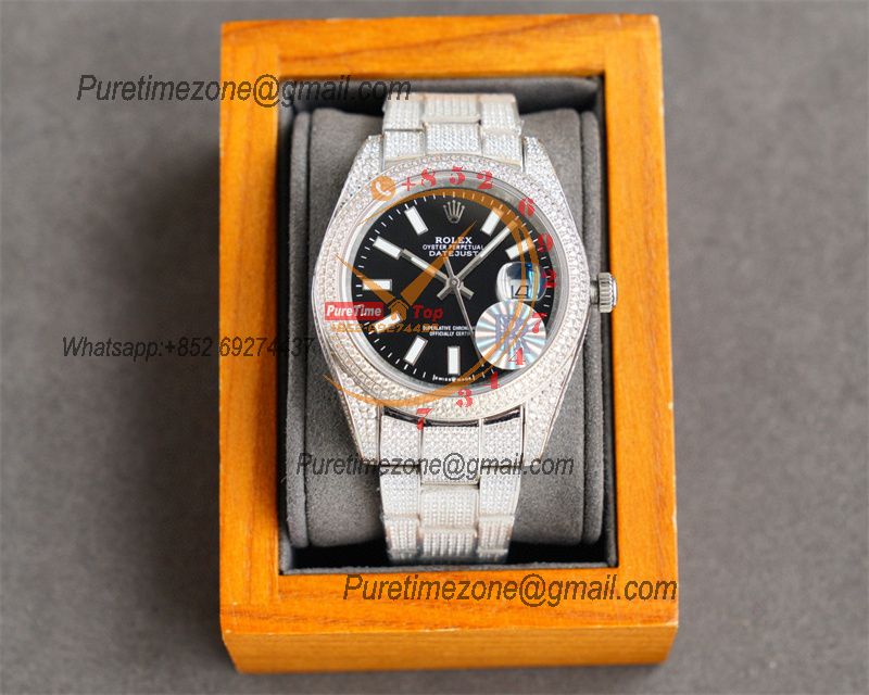 Datejust A2824 Automatic Mens Watch 41 Best Edition RRF Black Stick Paved Diamonds Fully Iced Out 904L Steel Bracelet