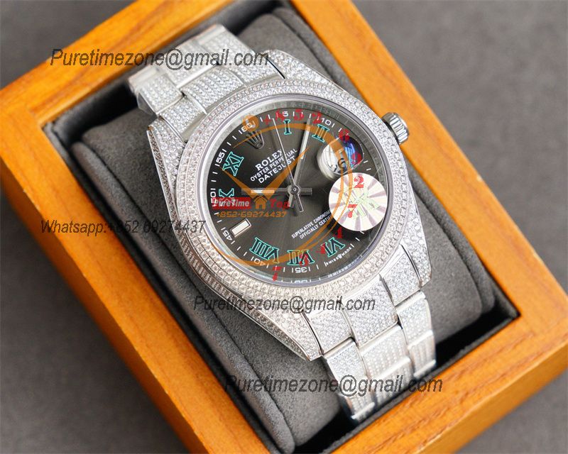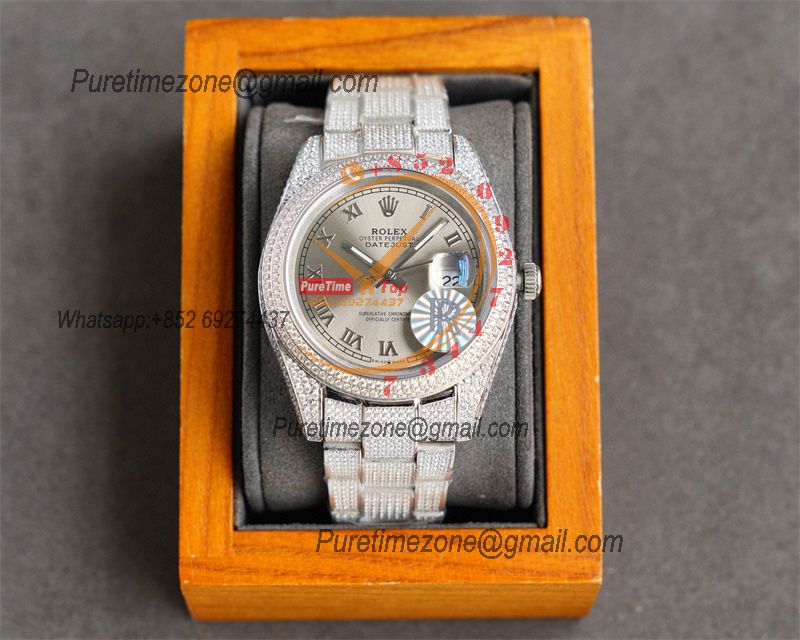 Datejust Miyota Automatic Mens Watch 41 Best Edition RRF Gray Roman Paved Diamond Fully Iced Out 904L Steel Bracelet $576.00 $480.00