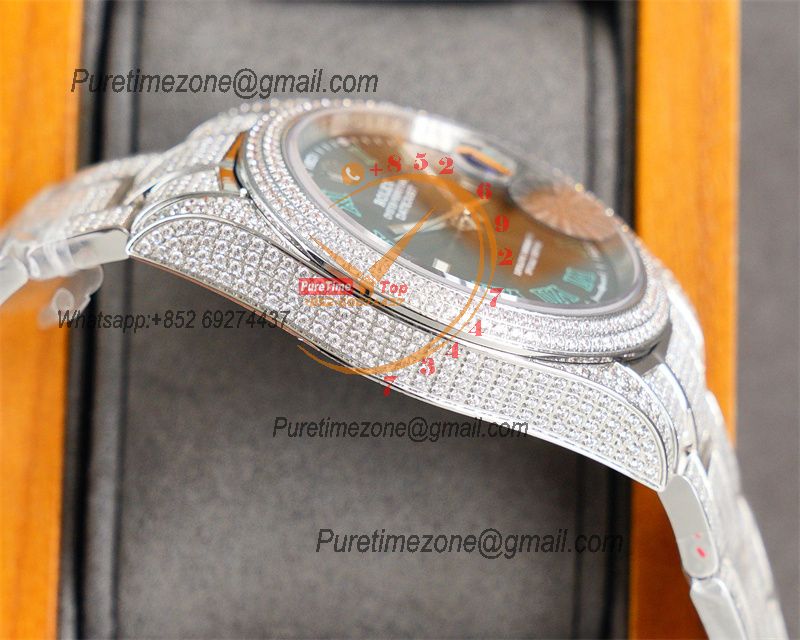 Datejust A2824 Automatic Mens Watch 41 Best Edition RRF Green Arabic Paved Diamonds Fully Iced Out 904L Steel Bracelet