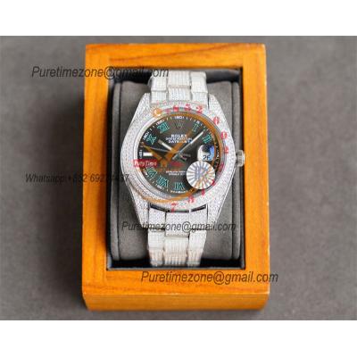 Datejust Miyota Automatic Ladies Watch 36 Best Edition RRF Color Arabic Paved Diamond Fully Iced Out 904L Steel Bracelet