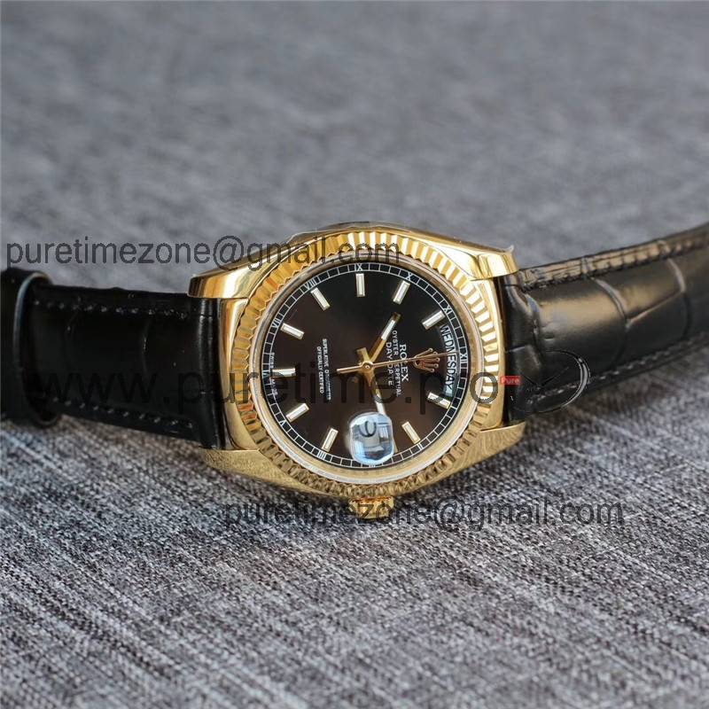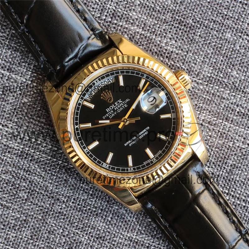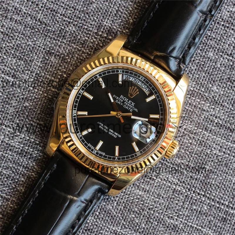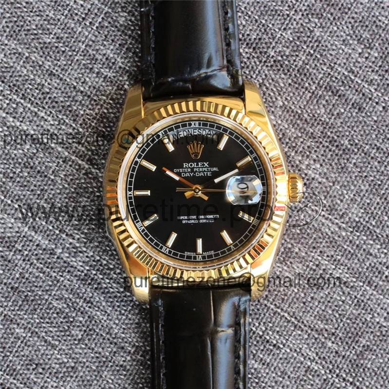 Home Rolex Day-Date Day-Date 118138 36mm A2836 Automatic Mens Watch Best Edition TRF Yellow Gold Black Dial Black Leather