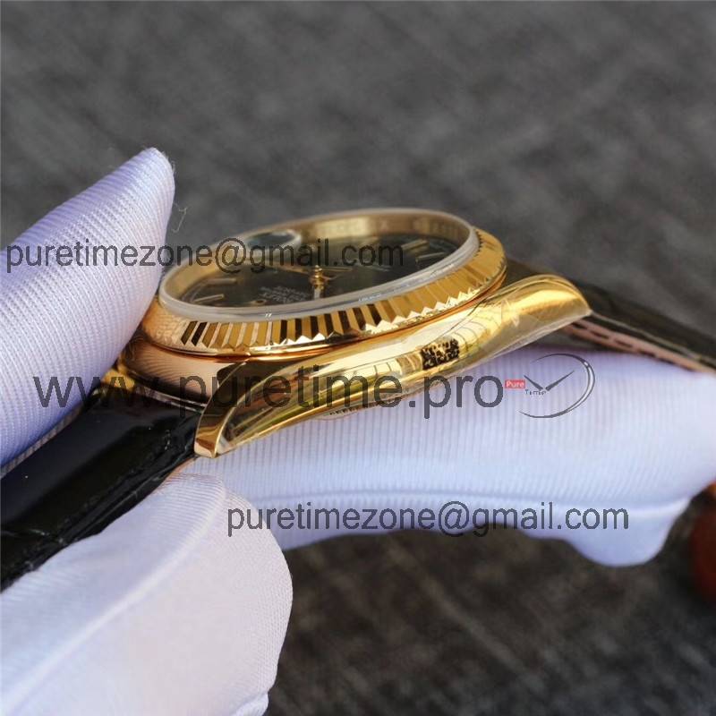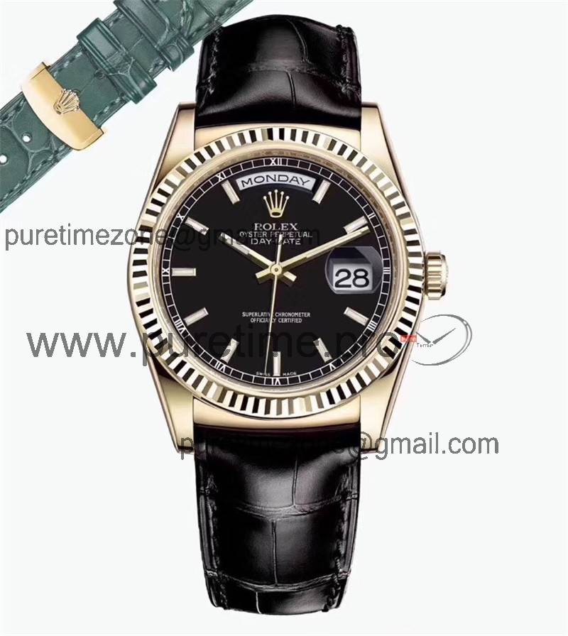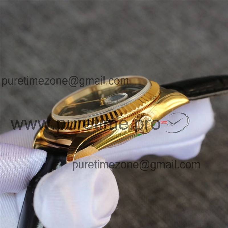 Day-Date 118138 36mm A2836 Automatic Mens Watch Best Edition TRF Yellow Gold Black Dial Black Leather