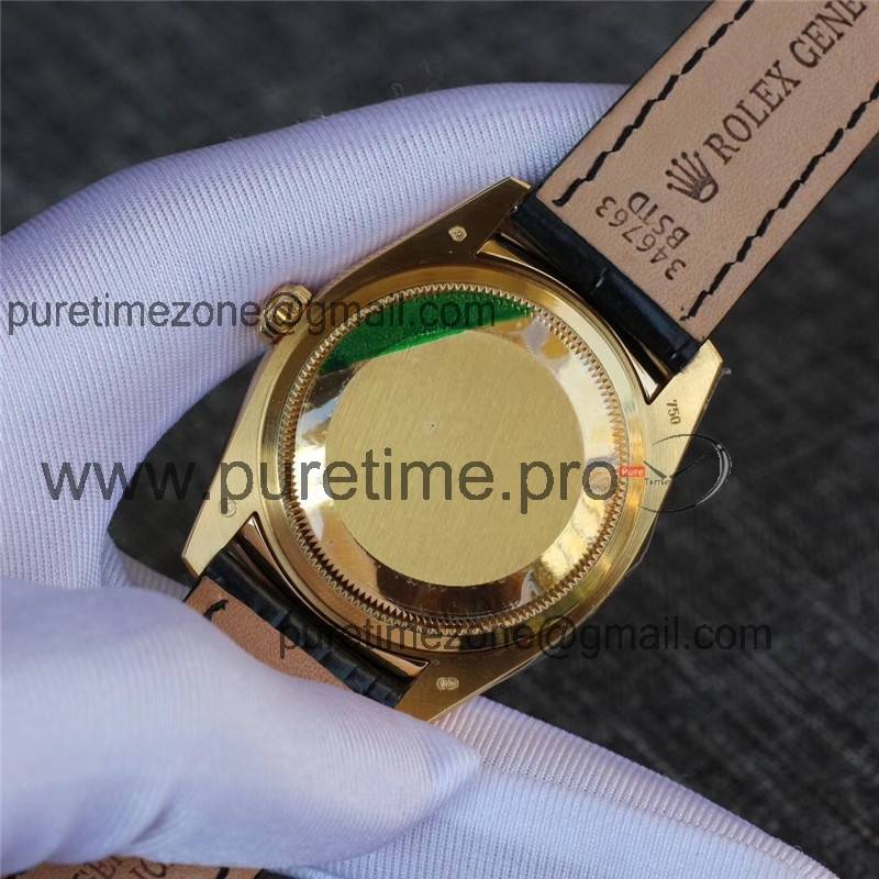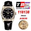 Day-Date 118138 36mm A2836 Automatic Mens Watch Best Edition TRF Yellow Gold Black Dial Black Leather