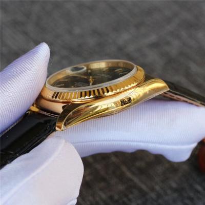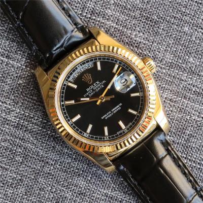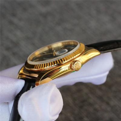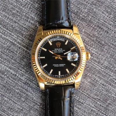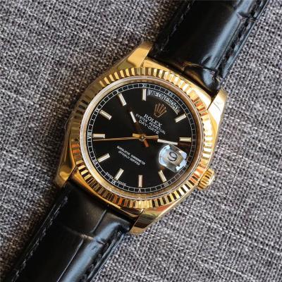 Home Rolex Day-Date Day-Date 118138 36mm A2836 Automatic Mens Watch Best Edition TRF Yellow Gold Black Dial Black Leather