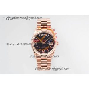 Day-Date 118138 36mm Automatic Mens Watch Best Edition TRF Rose Gold Black Dial A2836Black Leather