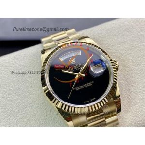 Home Rolex Day-Date Day-Date 118138 36mm A2836 Automatic Mens Watch Best Edition TRF Yellow Gold Black Dial Black Leather