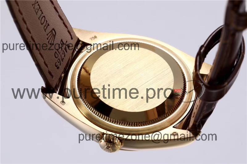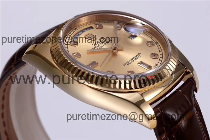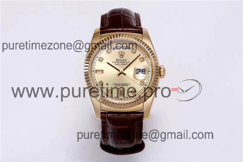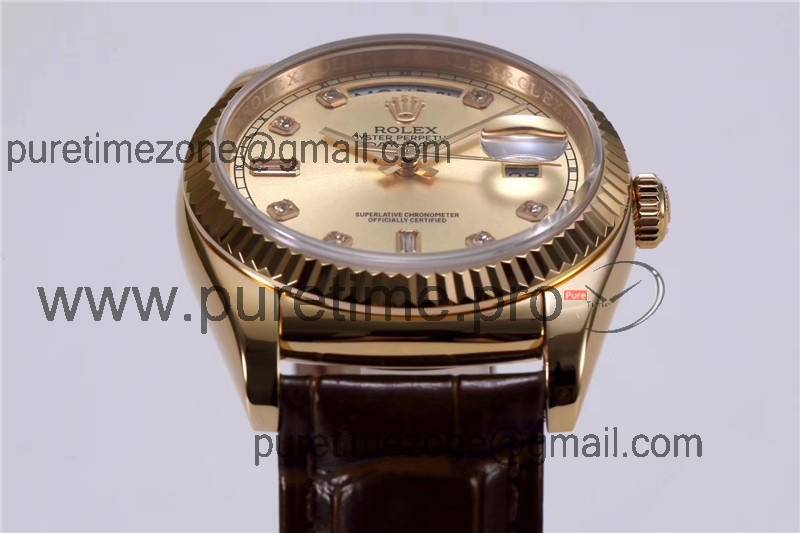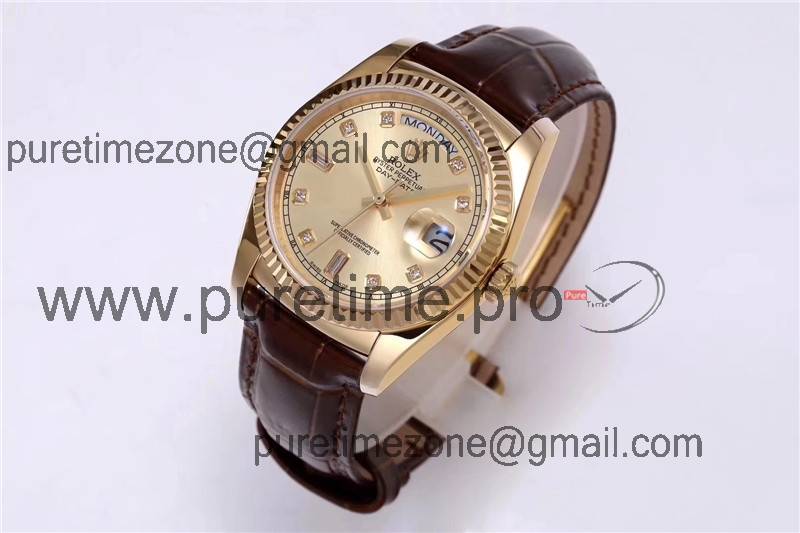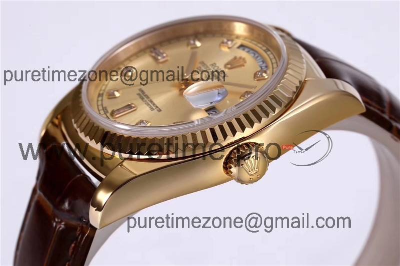 Day-Date 118138 36mm A2836 Automatic Mens Watch Best Edition TRF YG Gold Dial Diamond Brown Leather