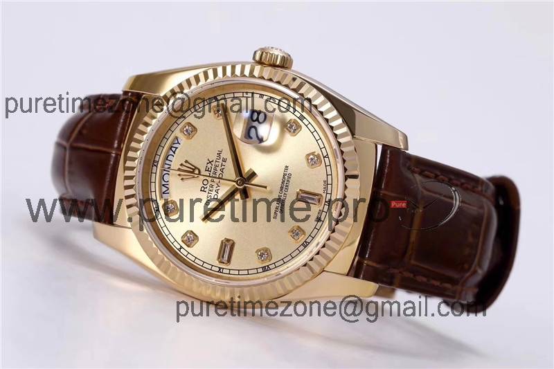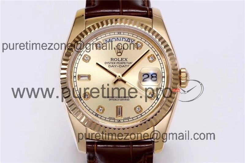 Home Rolex Day-Date Day-Date 118138 36mm A2836 Automatic Mens Watch Best Edition TRF YG Gold Dial Diamond Brown Leather