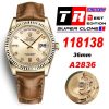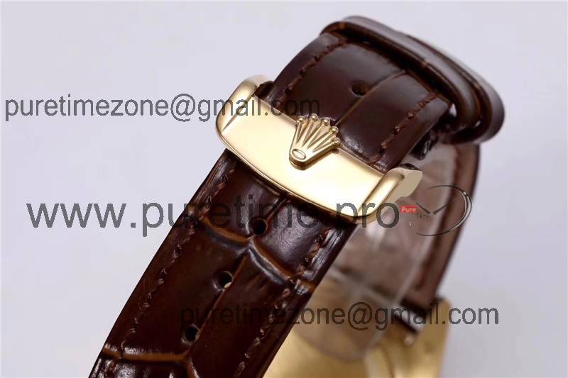 Day-Date 118138 36mm A2836 Automatic Mens Watch Best Edition TRF YG Gold Dial Diamond Brown Leather
