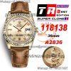 Day-Date 118138 36mm A2836 Automatic Mens Watch Best Edition TRF Rose Gold Silver DialBlack Leather