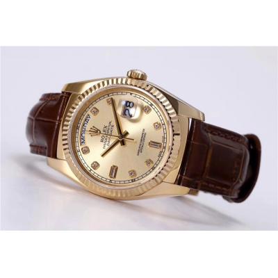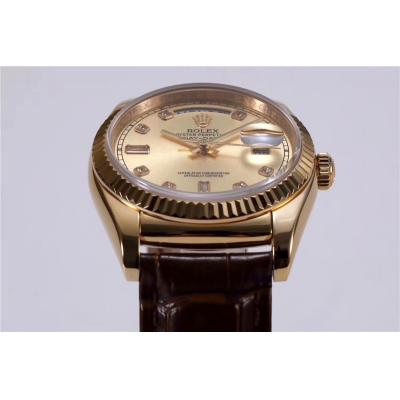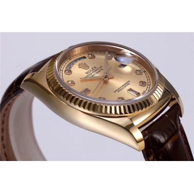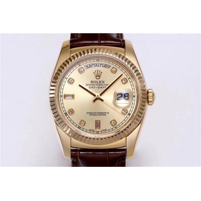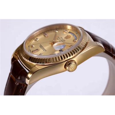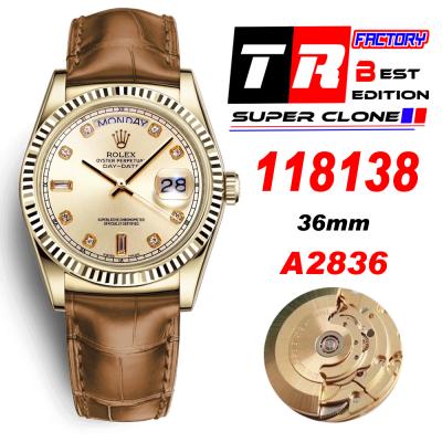 Home Rolex Day-Date Day-Date 118138 36mm A2836 Automatic Mens Watch Best Edition TRF YG Gold Dial Diamond Brown Leather