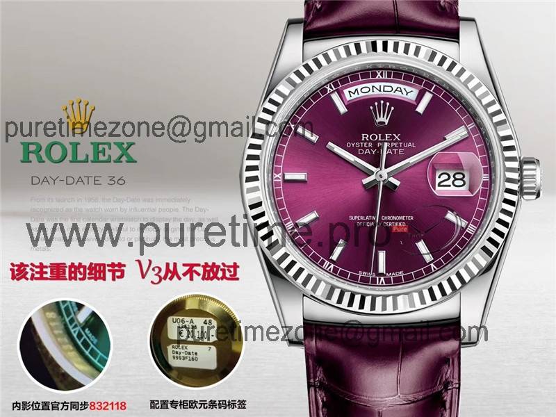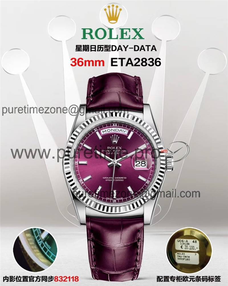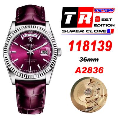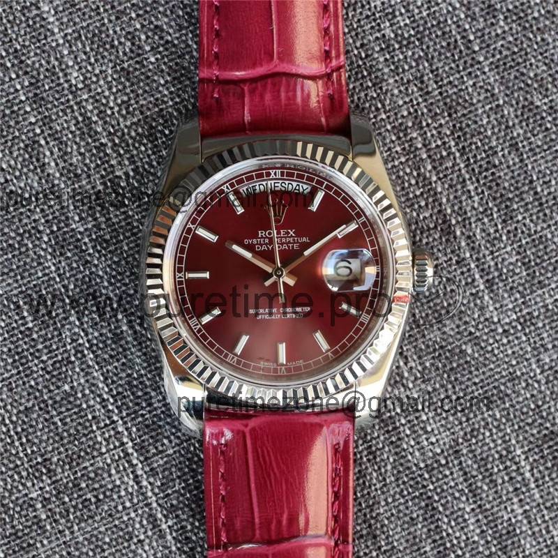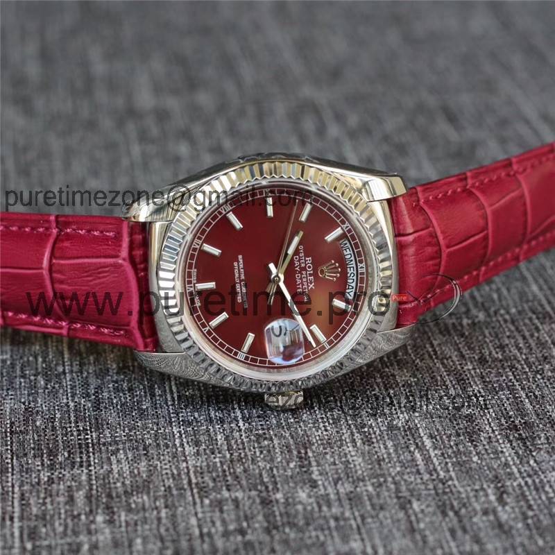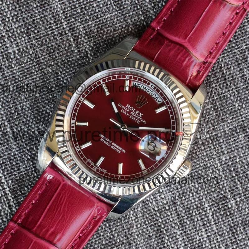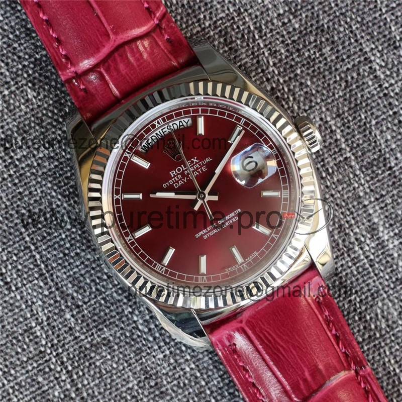 Home Rolex Day-Date Day-Date 118139 36mm A2836 Automatic Mens Watch Best Edition TRF Fluted Bezel Cherry Index Dial Red Leather