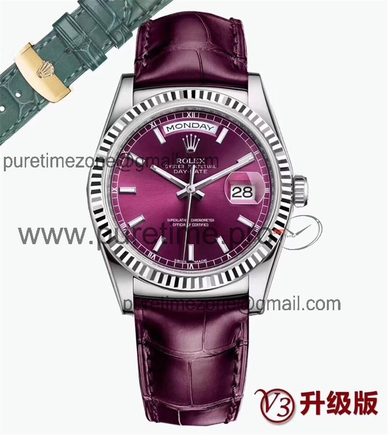Day-Date 118139 36mm A2836 Automatic Mens Watch Best Edition TRF Fluted Bezel Cherry Index Dial Red Leather