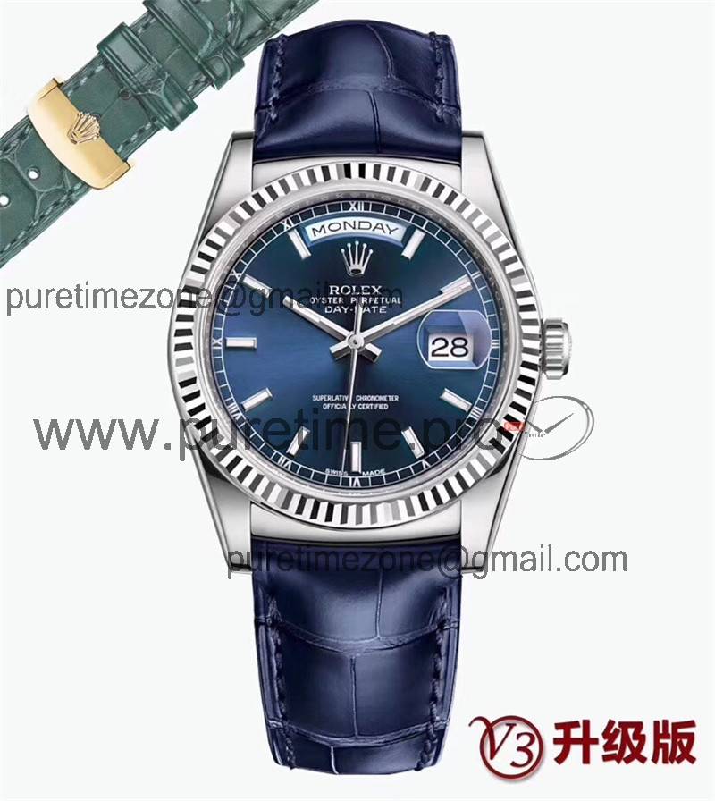 Day-Date 118139 36mm A2836 Automatic Mens Watch Best Edition TRF Stainless Steel Blue Dial Blue Leather